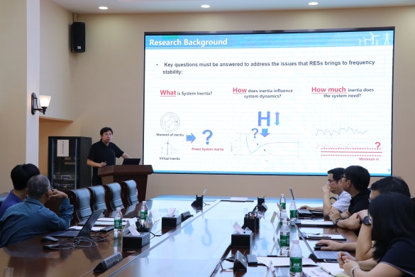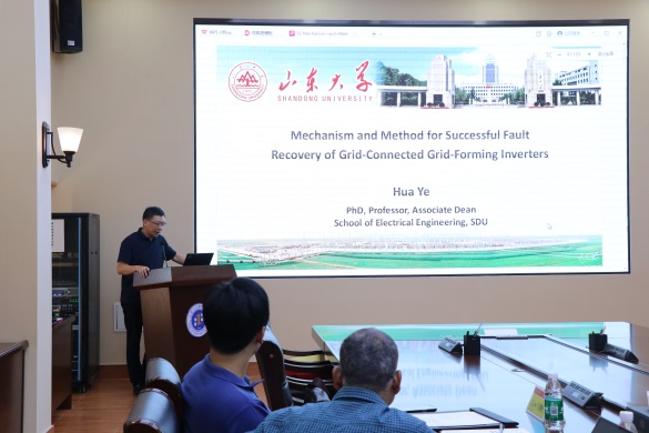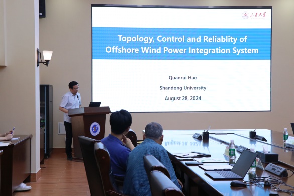随后,双方进行技术交流研讨,Bikash Pal教授、丁磊教授、叶华教授、赵浩然教授、孙媛媛教授、郝全睿教授分别以《逆变源主导下电力系统的最优电压穿越控制》《新型电力系统惯量认知与新能源主动支撑控制》《构网型变流器并网系统故障恢复机制与控制方法》《风电场数字孪生技术》《电力电子化电力系统谐波源建模与分析》《海上风电并网系统拓扑、控制及可靠性研究》为题作报告,介绍了各自课题组在电气工程前沿领域所取得的科研进展。