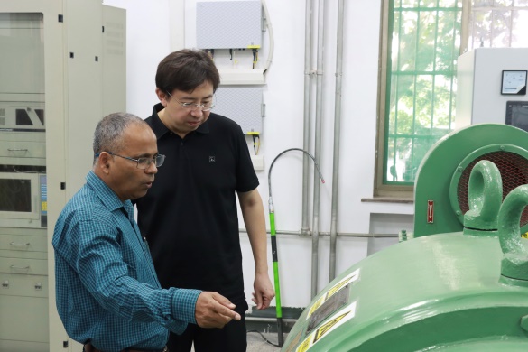 Bikash Pal教授共参观了学院十间科研实验室,包括:电力系统动态模拟与仿真实验室、直流输电动态模拟与仿真实验室、特高压电网分析研究中心、实时数字仿真系统(RTDS)实验室、配网保护新技术实验室、通用电磁暂态仿真实验室、电力系统经济运行实验室、新型配电网交直协同与优质供电实验室、新能源精细化建模与并网测试实验室、微电网实验室。近年来,学院科研实验室进行了统一规划建设,实现了互联互通、数据和信息共享,构建了以“新型电力系统”为中心,兼具“电力装备”的“1+N”实验平台。Bikash Pal教授表示,学院科研实验室实力雄厚,具备开展高水平国际科研合作的必要条件。